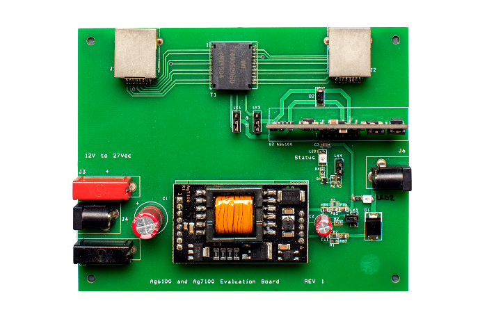 Ag7100 provides a cost and footprint optimised 40W isolated DC-DC converter, to boost 12V/24V up to 48V/57V. It is perfect for PoE, PSE or other applications requiring a convenient solution with minimal additional components and easy integration. It is an ideal functional complement to the Ag6100 PSE module.