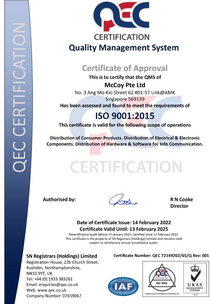 We have been awarded the ISO 9001:2015 certification for Distribution of Consumer Products, Electrical & Electronic Components, Hardware and Software for Info Communication.